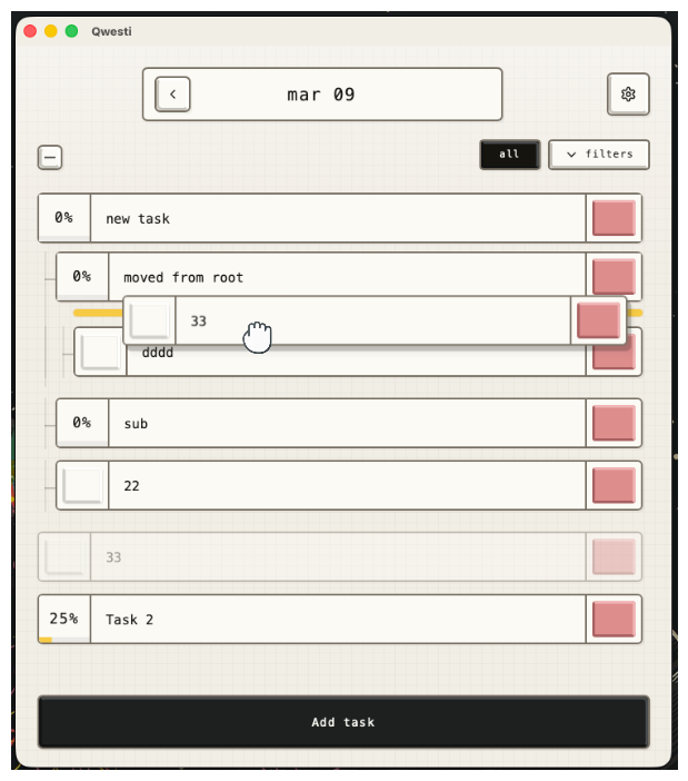 - Infinitely nested tasks with tree view for navigating complex task hierarchies